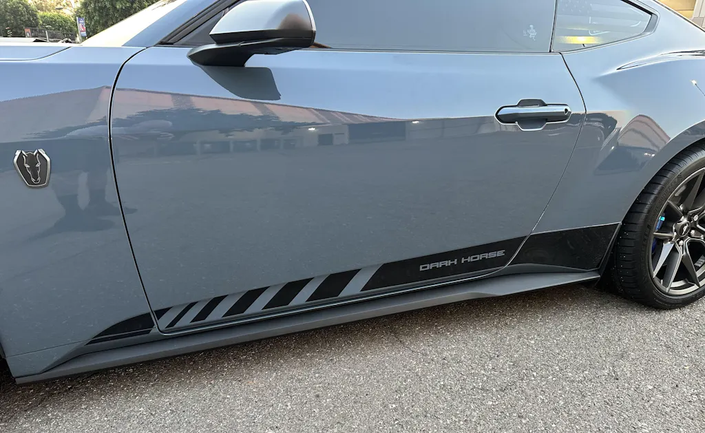 Enhance the style of your 2024+ Mustang S650 with these high quality, personalized rocker stripes. Made from durable precision cut industry premium vinyl, these stripes will add a sleek and distinctive look to your vehicle. Perfect for any mustang enthusiast.